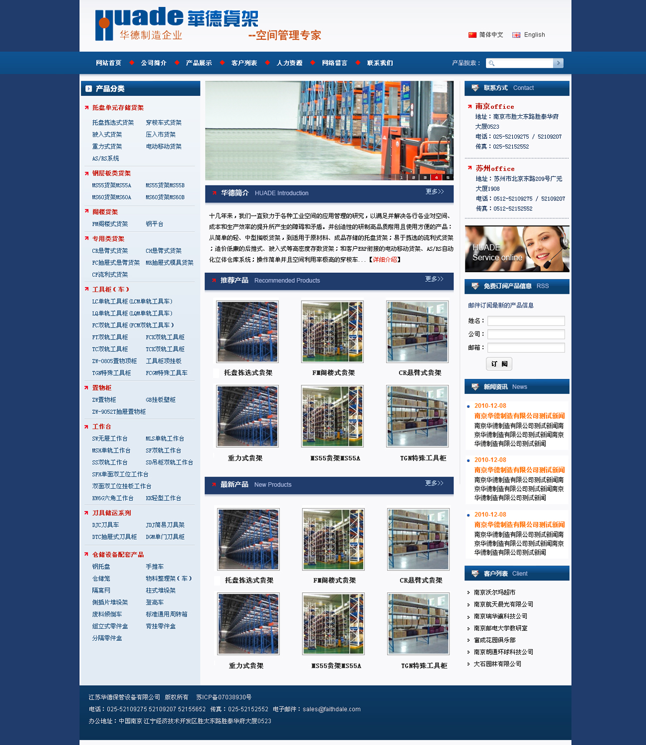 十幾年來,我們一直致力于各種工業空間的應用管理的研究,以滿足并解決各行各業對空間、成本和生產效率的提升所產生的障礙和矛盾。并創造性的研制高品質耐用且使用方便的產品:從簡單的輕、中型擱板貨架,到適用于原材料、成品存儲的托盤貨架;易于揀選的流利式貨架;造價低廉的后推式、駛入式等高密度存數貨架;和客戶ERP銜接的電動移動貨架、AS/RS自動化立體倉庫系統;操作簡單并且空間利用率極高的穿梭車貨架和重力式貨架等;我們還對微小存貯空間管理有著深入的研究,如制造加工業的刀具刃具工具的存放;生產車間各類工具的存放;危險品的存放等,這種工業空間我們有工具柜、工作臺、刀具車、危險品存放柜等產品對之進行行之有效的管理。我們的產品符合并通過了美國RMI、歐洲 FEM & EN的行業標準,為世界各地的客戶采購我們的產品提供了法律依據和品質保證。今天,我們的客戶已經遍布全球幾十個國家。在南極科考站,我們的產品更是通過了極地環境的考驗。